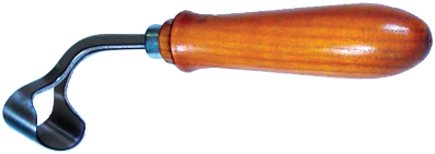 This Swiss, curved hoof knife has an oval-shaped cutting surface designed to remove sole tissue. Wooden handle. Cutting blade on the entire edge of the loop. Can be used on either side of the blade and on the end for cutting out a smaller area. These high-quality molybdenum hardened stainless steel blade knives come with a Yellow nylon nonslip grip handle.