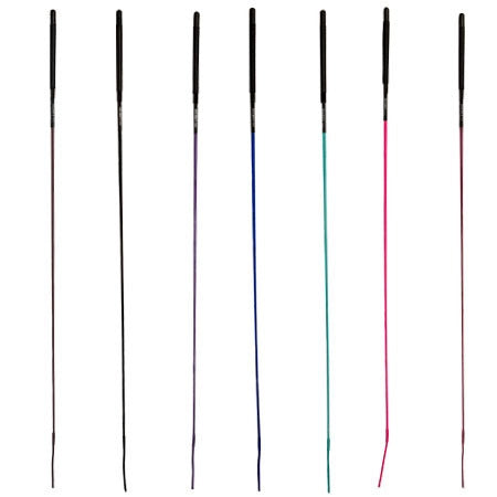 Sullivan Balance whips are a lightweight fiberglass whip with a fine nylon weave.  The whip has a smooth rubber handle.  The Sullivan balance whip has medium flexibility and has a double reinforced shaft/tip joint for added longevity.  The whip also has streamline gun metal hardware for a great feel when maneuvering hogs around the show ring.  The balance whip is designed for any age of showman from beginners to professional showman.  PURPLE 33"