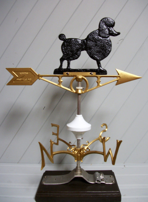 The Poodle Dog Weathervane by Robbins is made of beautifully painted cast aluminum which never rusts. The instructions included with each weather vane provide easy and fast installation. Will look beautiful on your barn, shop, home, stable, fence or posts. Ornamental globes/balls sold separate! Complete weathervane kit.