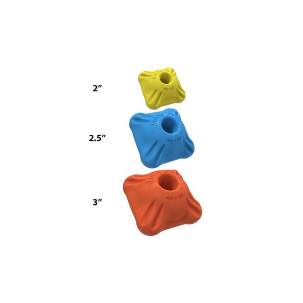 The Jolly Pet Flex N Chew Squarble has the unique shape that provides the perfect grip from any angle to make the ultimate fetch & retrieve toy. It is uniquely shaped for the most erratic bounce to drive your dog bonkers! The ridges on the ends of these toys give your dog the feeling that they are chewing through the toy while massaging his gums. Available 3 sizes.
