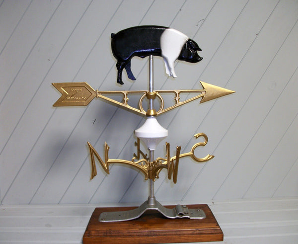 The Yorkshire Hog Weathervane by Robbins is made of beautifully painted cast aluminum which never rusts. The instructions included with each weather vane provide easy and fast installation. Will look beautiful on your barn, shop, home, stable, fence or posts. Ornamental globes/balls sold separate! Complete weathervane kit.  The modern hog that Robbins shows in picture can be painted as a Yorkshire or a Red Duroc hog.